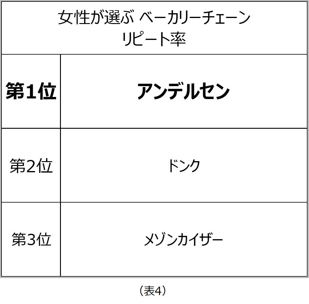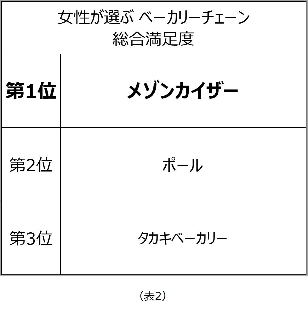 2022年2月に実施した調査において、「ドンク」が利用率第1位、「メゾンカイザー」が総合満足度第1位、「ポール」が推奨度第1位、 「アンデルセン」がリピート率第1位となりました(表1~4)。