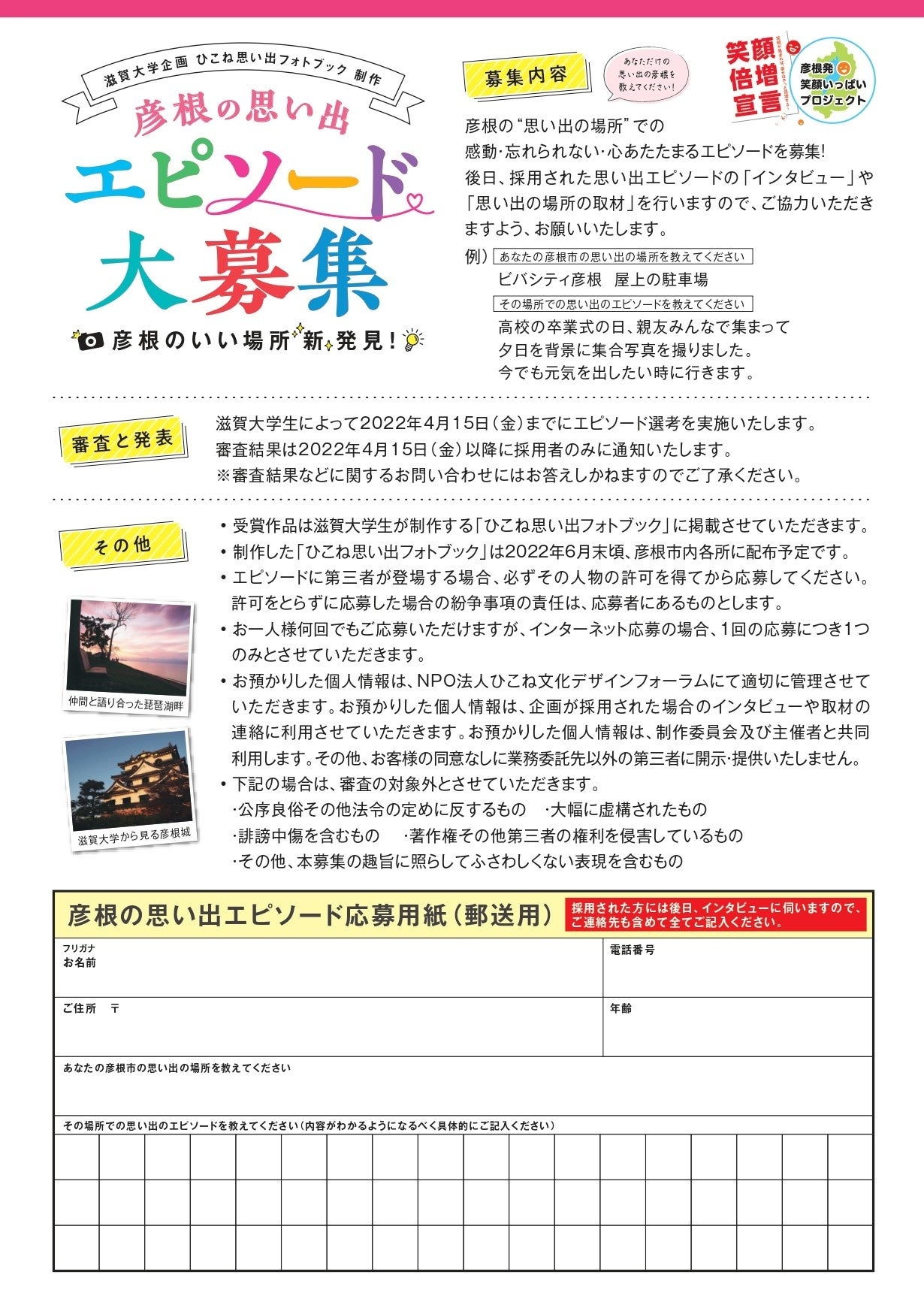 滋賀大学生企画 「ひこね思い出フォトブック」制作 “彦根の思い出エピソード”大募集!