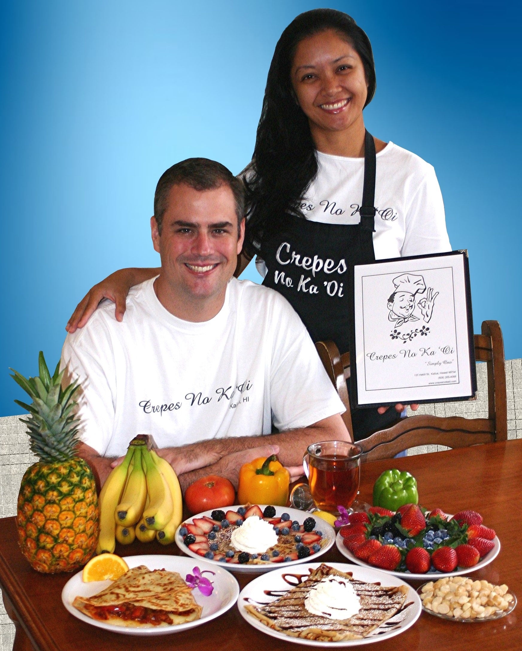 「Crepes No Ka ʼOi」は、オアフ島の東海岸エリア・海が美しい静かな街カイルアに、クリスとカケイいう夫婦 がオープンしたクレープハウスです。地元のフレッシュな⾷材を使った彩り豊かなクレープを、⾷事系からスイーツ系まで幅広いメニューで提供しています。フランスで⽣まれたクレープがハワイの⾵に出会ったハワイアンクレープ。アジアやヨーロッパなどの多数の⺠族が住み、多種多様な⽂化が取り⼊れられたハワイならではのミクスチャースタイルが特徴です。メニューはどれも家庭的でありながら、完璧なバランスで味付けされていて、⾷べた⼈の⼼を掴んで離しません。 海からの⾵がふき抜ける店内は、コーヒーやクレープのおいしい⾹りが漂い、笑顔で迎えてくれる温かいスタッフと常連のお客様がいる、アットホームな空気で満たされています。