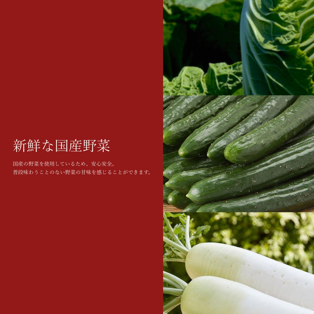 新鮮な国産野菜を完全無添加の自家製ヤンニョムで漬け込み、発酵状態にあわせて最適なタイミングで、できたてのまま毎月2回お届け。