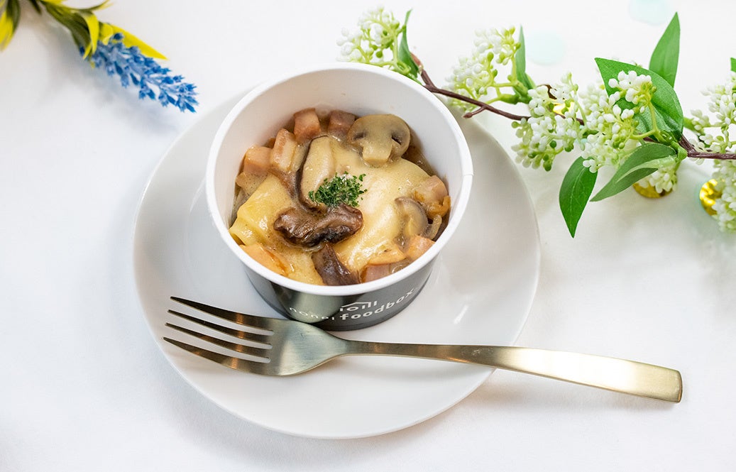ノンピ設立のきっかけに至った本プランの「ポルチーニ香る 濃厚きのこクリームパスタ」。