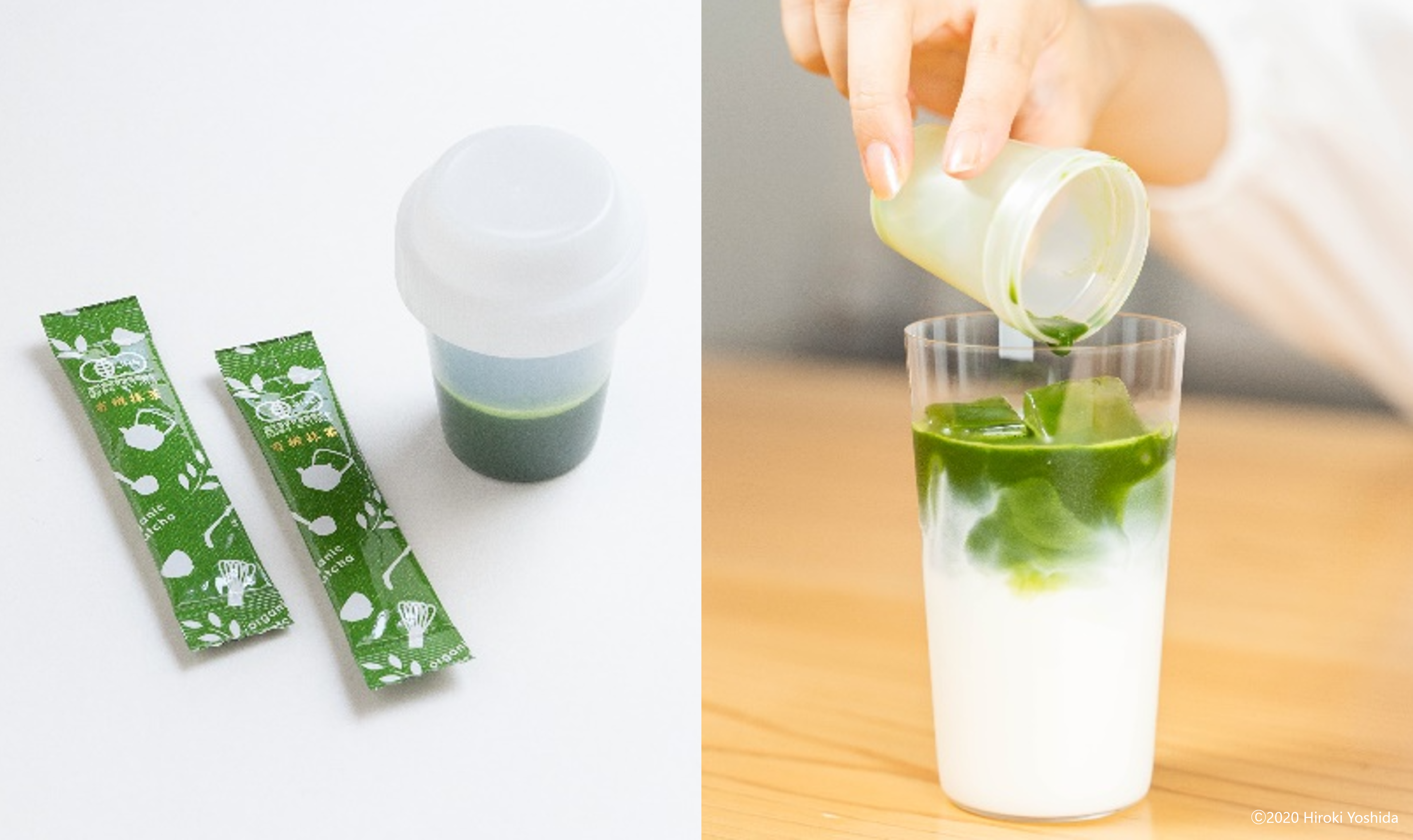 吉村が開発したのが誰でも簡単に抹茶が点てられる「抹茶ミニシェイカー」です。シェイカーの底に付いた羽形の突起2つが、水と粉を効率よく撹拌でき、ダマになるのを防ぎますので、抹茶本来の風味が味わえるアレンジドリンクやスイーツを、自宅で手軽に楽しむことができます。