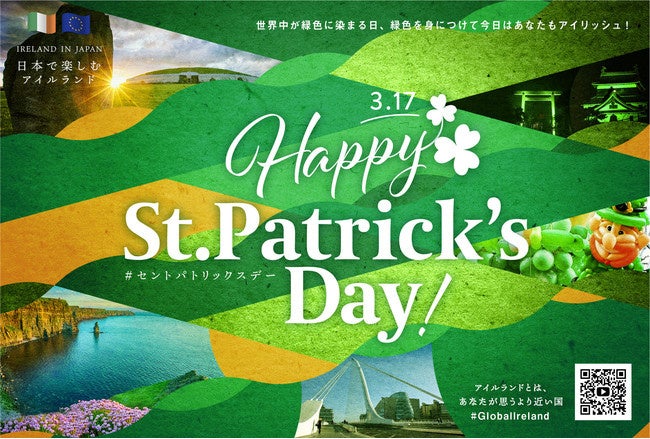 3月17日のセントパトリックスデーは、5世紀にアイルランドへキリスト教を広めた守護聖人、聖パトリックを記念する祝日です。アイルランドをはじめ、世界各国で緑色の扮装でパレードしたり、緑色のビールを飲んだり、川を緑色に染めたりと街中がグリーンと笑顔で溢れます。日本でも、全国各地でパレードやフェスティバル行われ、春の訪れを感じながら、日本とアイルランドが文化交流する場として広がっています。