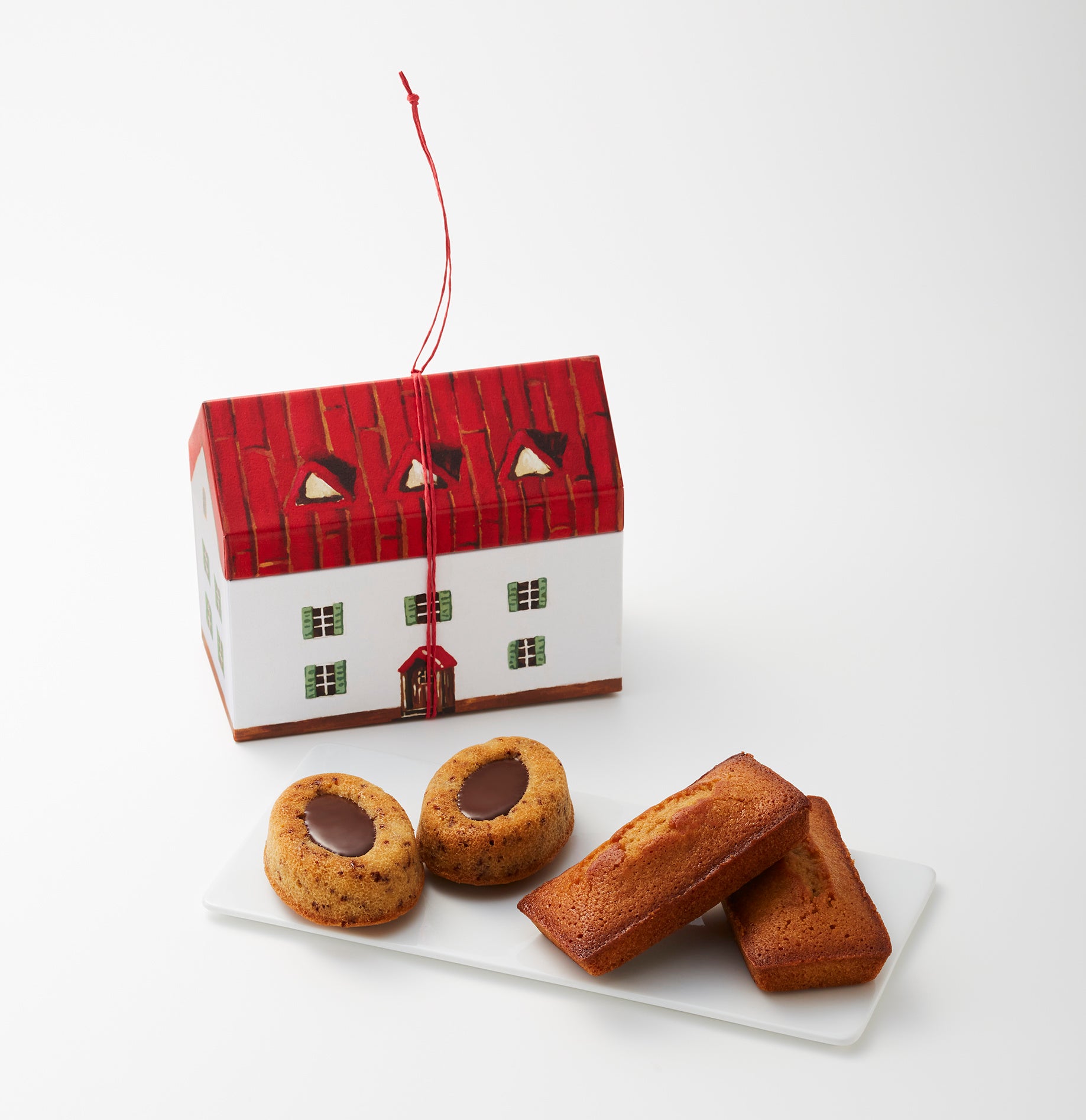 ノワ・ドゥ・ブールの代表商品「フィナンシェ」と香り豊かなフィナンシェ生地にチョコチップを入れて焼き上げ、チョコガナッシュをトッピングした「ティグレ」のかわいいおうち型の詰合せです。