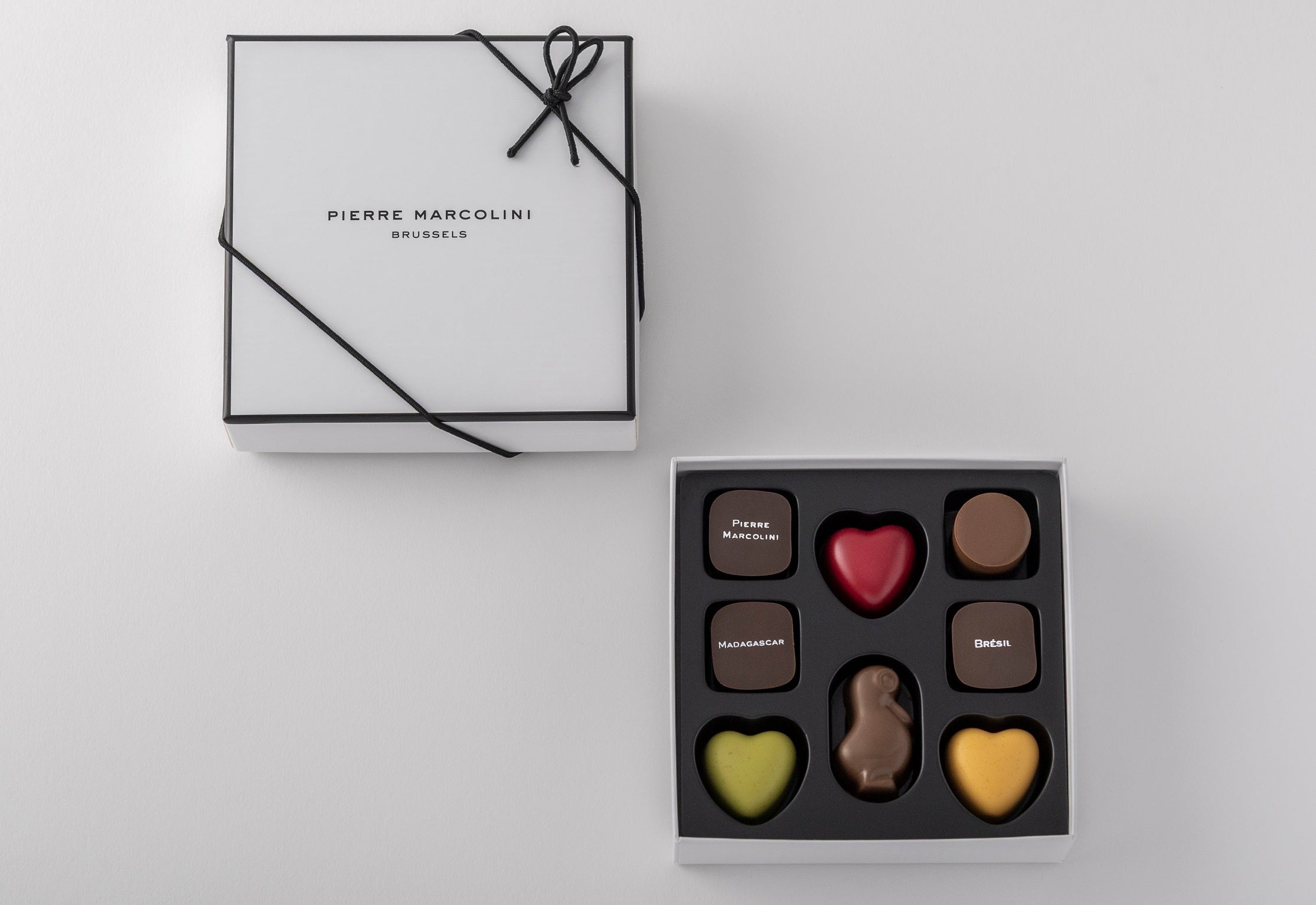 ベルギー王室御用達のベルギーを代表するショコラティエ。自ら世界のカカオ農園を訪れてカカオ豆の仕入れルートを開拓し、その後のチョコレートづくりに関わる全ての工程を自身で手掛けている本格的なチョコレートブランドです。人気のハートのクールシリーズは自然由来のナチュラルな色合いにリニューアル。赤く美しいフランボワーズ香る「クール フランボワーズ」や、代表的な「ピエール マルコリーニ グラン クリュ」やキャラメルソースが入った「アニモ キャラメル」など個性の異なる8種類のプラリーヌを詰めたこの時期限定のアソート。