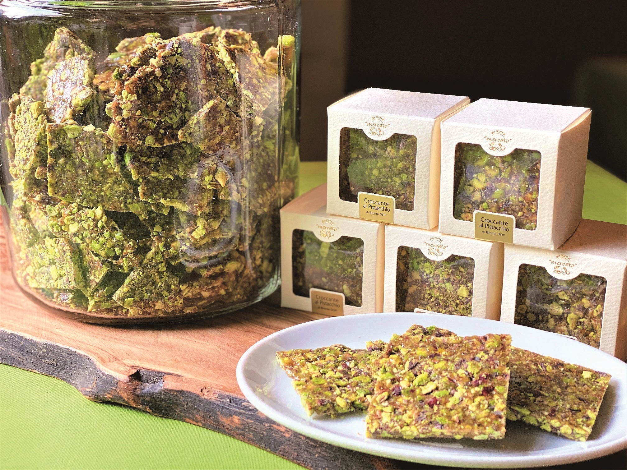 オーナーが自らが出会い、感動してきた熱い情熱を持った生産者やその土地の食文化や歴史を持つイタリアの食材を紹介しているブランド。今回は特別に出来たてを量り売り。カリっとした食感と、キャラメリゼされたピスタチオの風味を自分用にも差し上げる方へもお好みの量をお選びいただけます。