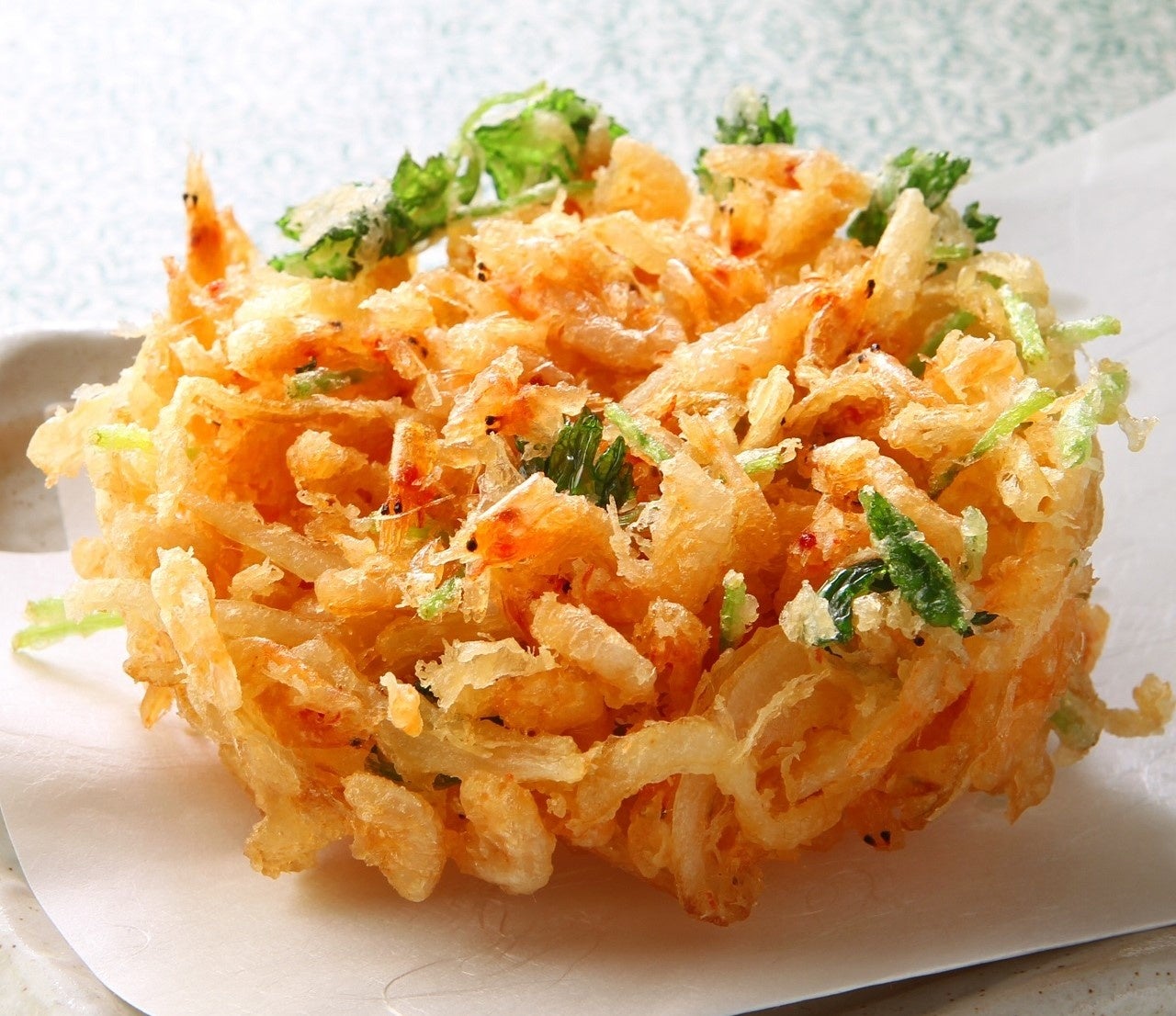 たまねぎの甘みと桜海老の香ばしい香りが相性抜群です。春らしい色合いの華やかなかき揚げを、単品でもお試しいただけます。