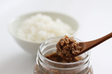 従来の豚肉よりやわらかく味もよいと言われる、福島県特産のエゴマの実を飼料に育ったエゴマ豚をたっぷり使い、味噌と甘酒の発酵食品を合わせたました。砂糖不使用で体にも優しく、粒エゴマのプチプチ感と一味のピリ辛がくせになります。ごはんにも、簡単アレンジで一品おかずにもなる万能な商品です。
