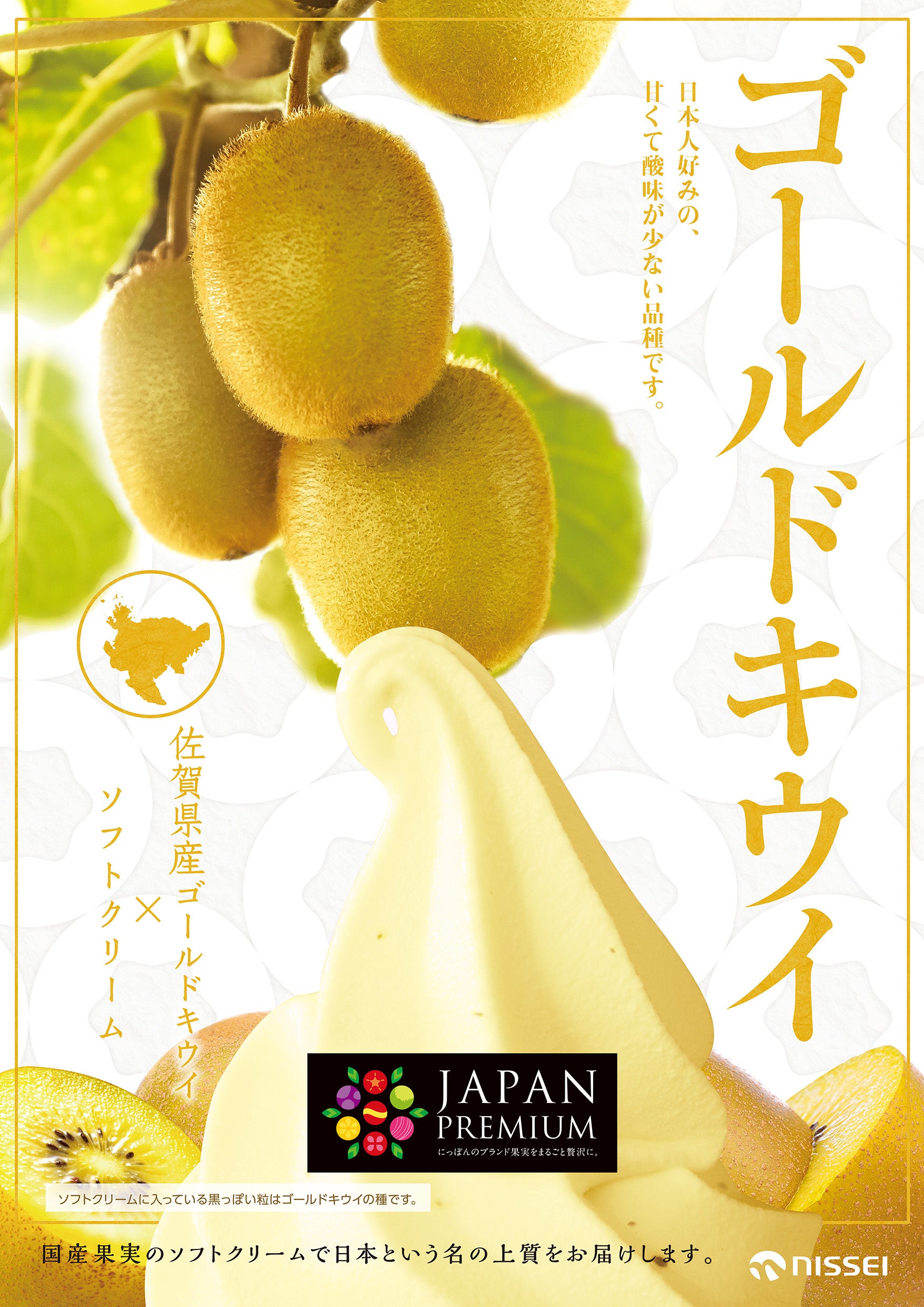 日本人の味覚に合わせて改良され誕生した、佐賀県産のゴールドキウイをピューレ状に加工して20%配合した、生のゴールドキウイをソフトクリームとして味わっている感覚をめざした製品です。