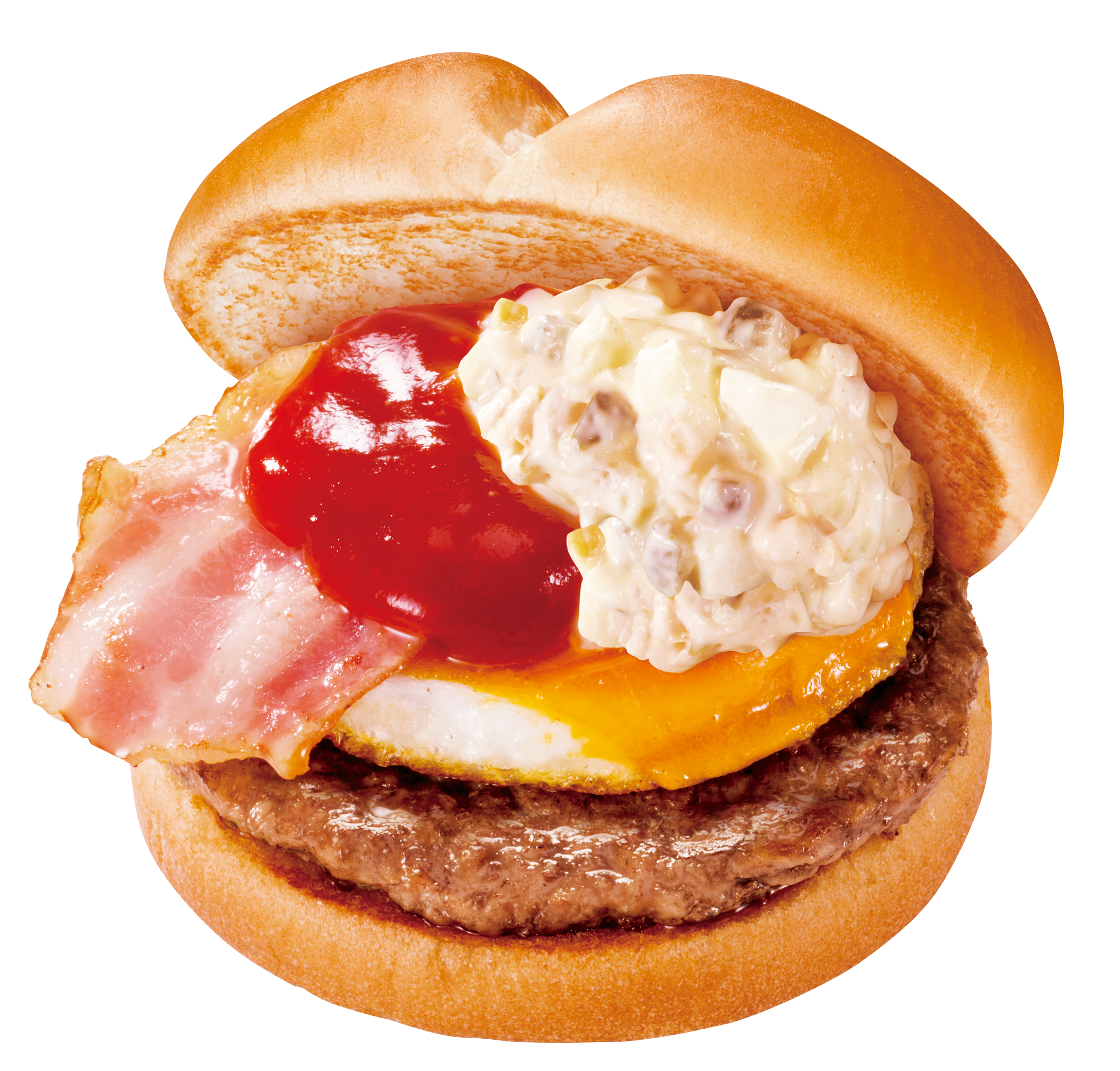 ファーストキッチンといえば『ベーコンエッグバーガー』。日本発のハンバーガーチェーンから生まれた、日本人の味覚に合うように作られたバーガーであり、創業45年間、変わらず愛され続けている看板商品です。