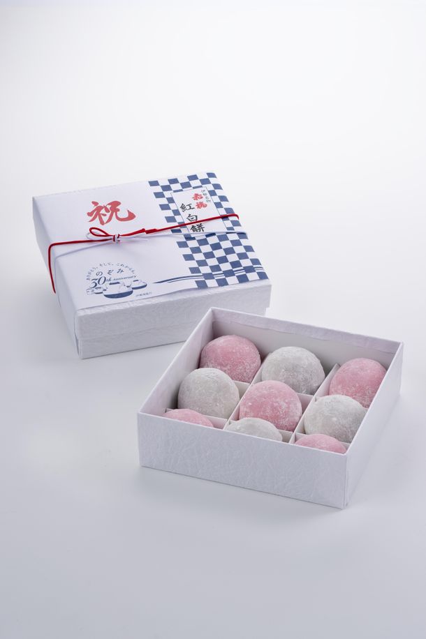 東海道新幹線のぞみ30周年を祝い、赤福特製の紅白餅を作りました。