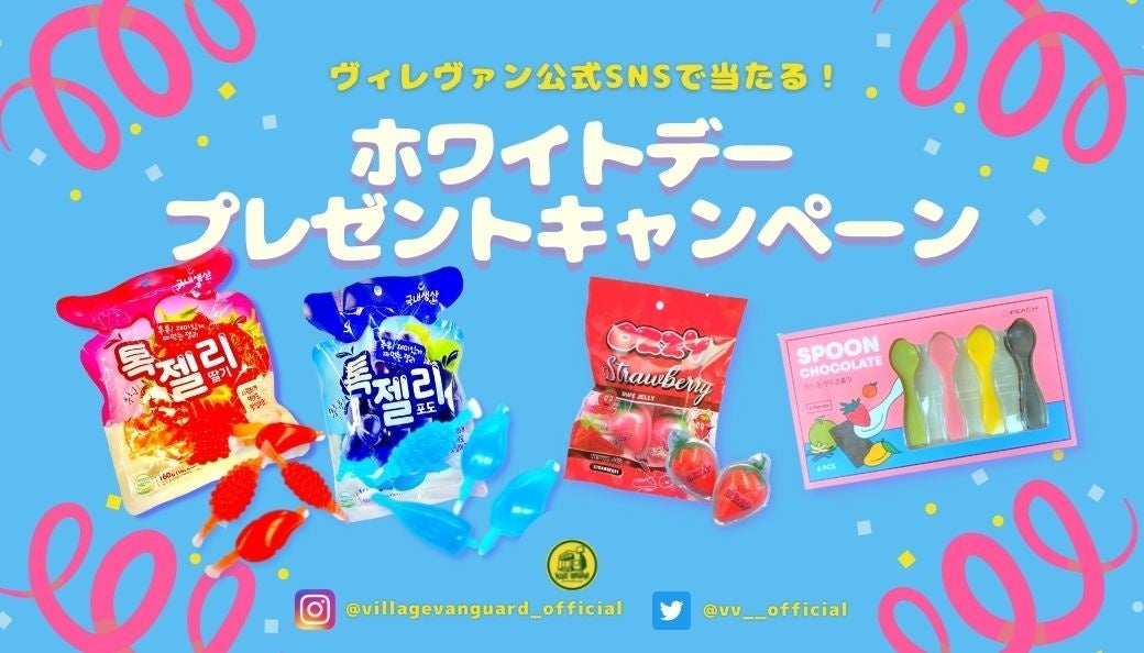 株式会社ヴィレッジヴァンガードコーポレーション(所在地:愛知県名古屋市、代表取締役社長:白川篤典)では、2022年3月10日(木)より公式SNSにおいて、『ホワイトデープレゼントキャンペーン』を開始いたしました。