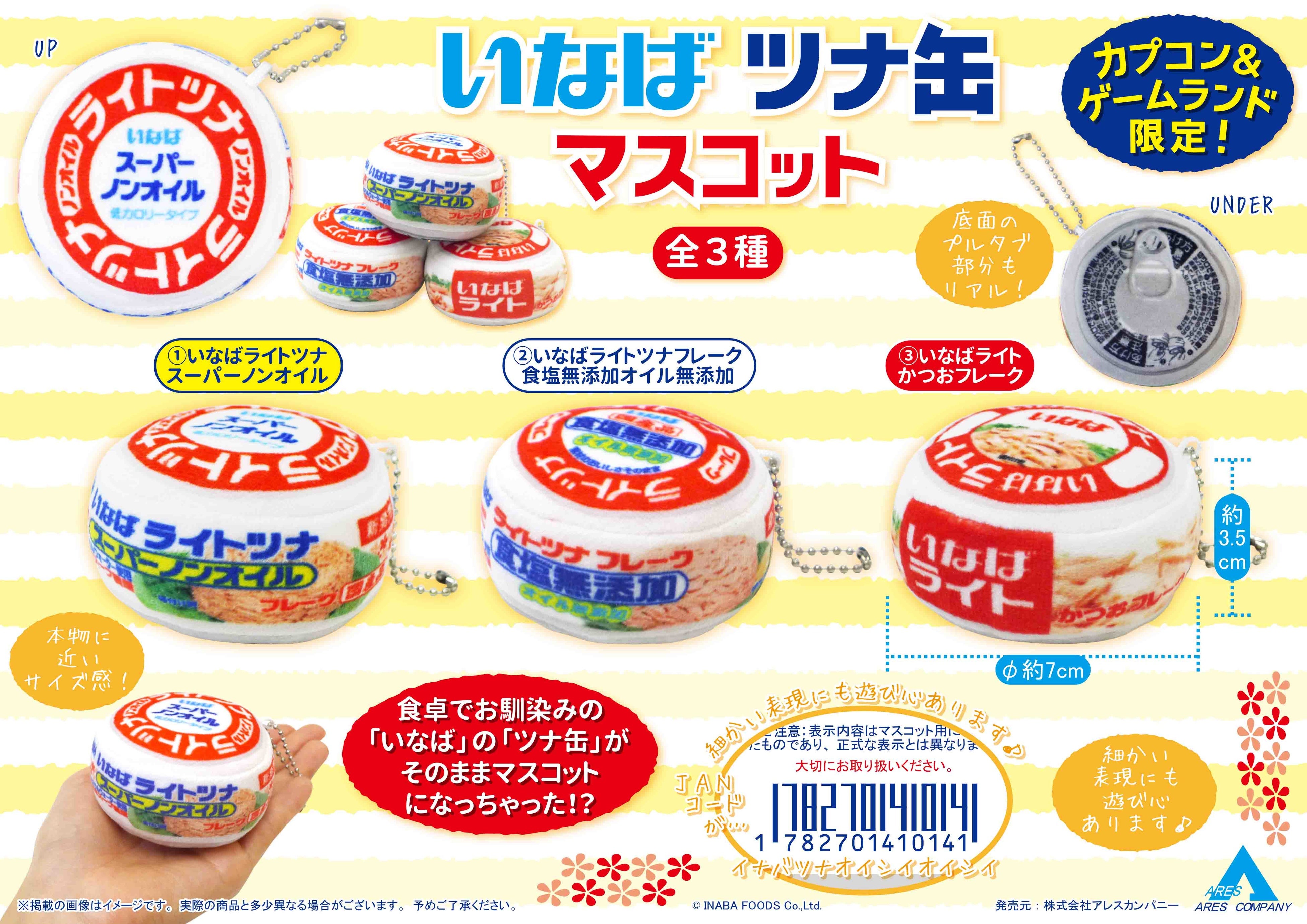 食卓でお馴染みの『いなばのツナ缶』が、「マスコット」「エコバッグ」「もちもちラウンドクッション」となってプライズに登場!