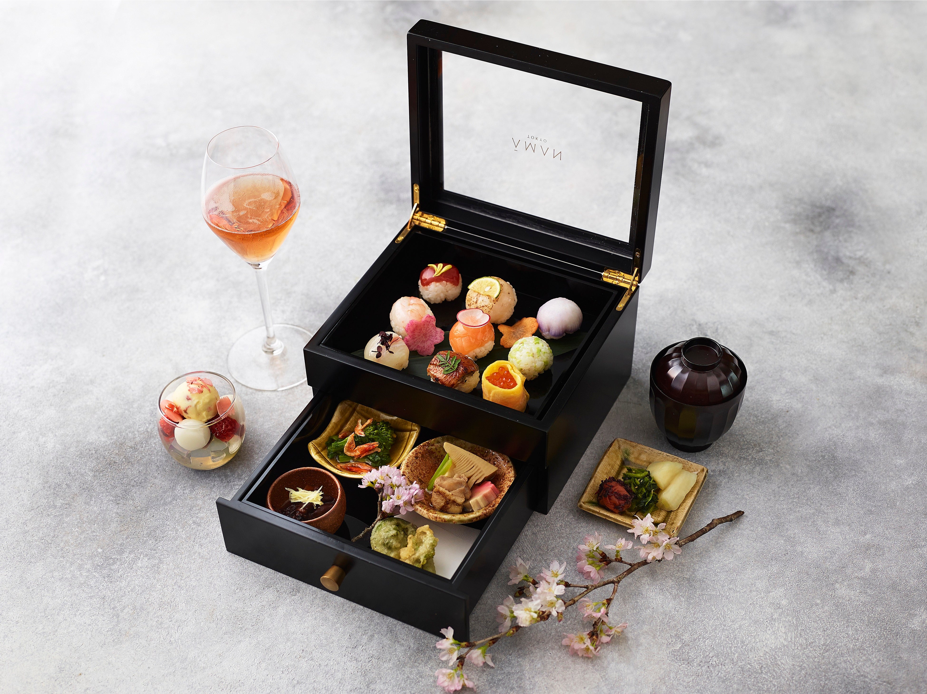 アマン東京 (東京・大手町、総支配人 八木朋子)では、33階の「ザ・ラウンジ by アマン」にて、2022年3月8日(火)から4月10日(日)まで春らしい色合いの桜のカクテルや、彩り鮮やかな手毬寿司とお惣菜が詰められた「お花見弁当」を期間限定でご提供いたしております。ガーデンラウンジの桜のセンターピースに加え、バーカウンターに設えられる桜とともに、少し早いお花見気分をお楽しみいただけます。