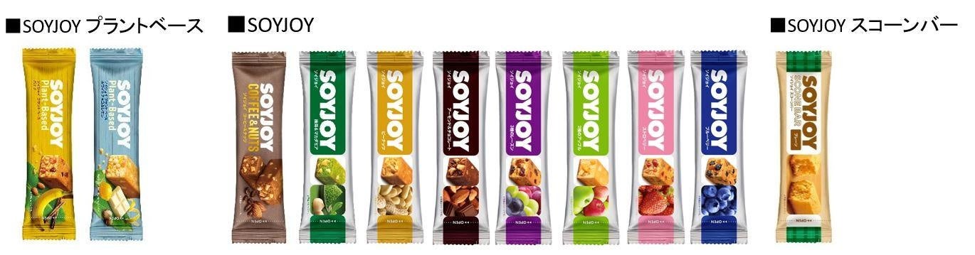 タンパク質や大豆イソフラボンなど素材由来の栄養素を美味しく、いつでもどこでも手軽に食べられる大豆バーとして2006年に誕生。1本当たり約35粒のまるごと大豆と素材の味わいを大切にした低GI食品としてラインアップを拡充してきました。粗びき大豆をアクセントにプレーンスコーン風のしっとりとした食感の「SOYJOY スコーンバー」に続き、このたび「SOYJOY プラントベース」が加わり、全3シリーズで展開しています。