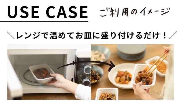 冷蔵庫からお惣菜を取り出し、電子レンジで数分温めてお皿に盛り付けるだけで、カラダに優しい健康的な食卓が完成します。