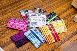 特徴:30年以上に渡って機織りを専門としてきた事業所で、カラフルな糸を使って手織りされた逸品。