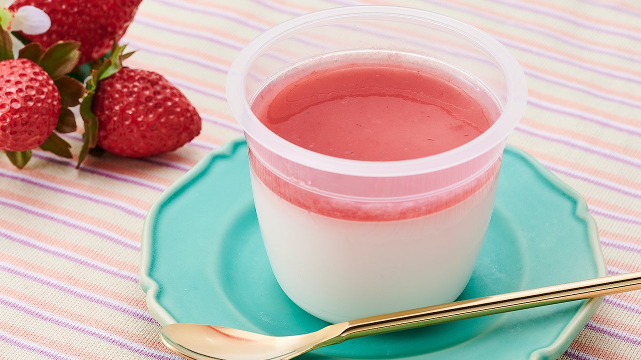 程よいミルク感と爽やかな喉ごしのパンナコッタに、甘酸っぱい苺のソースをのせました。「パンナコッタ」はイタリア発祥のスイーツです。