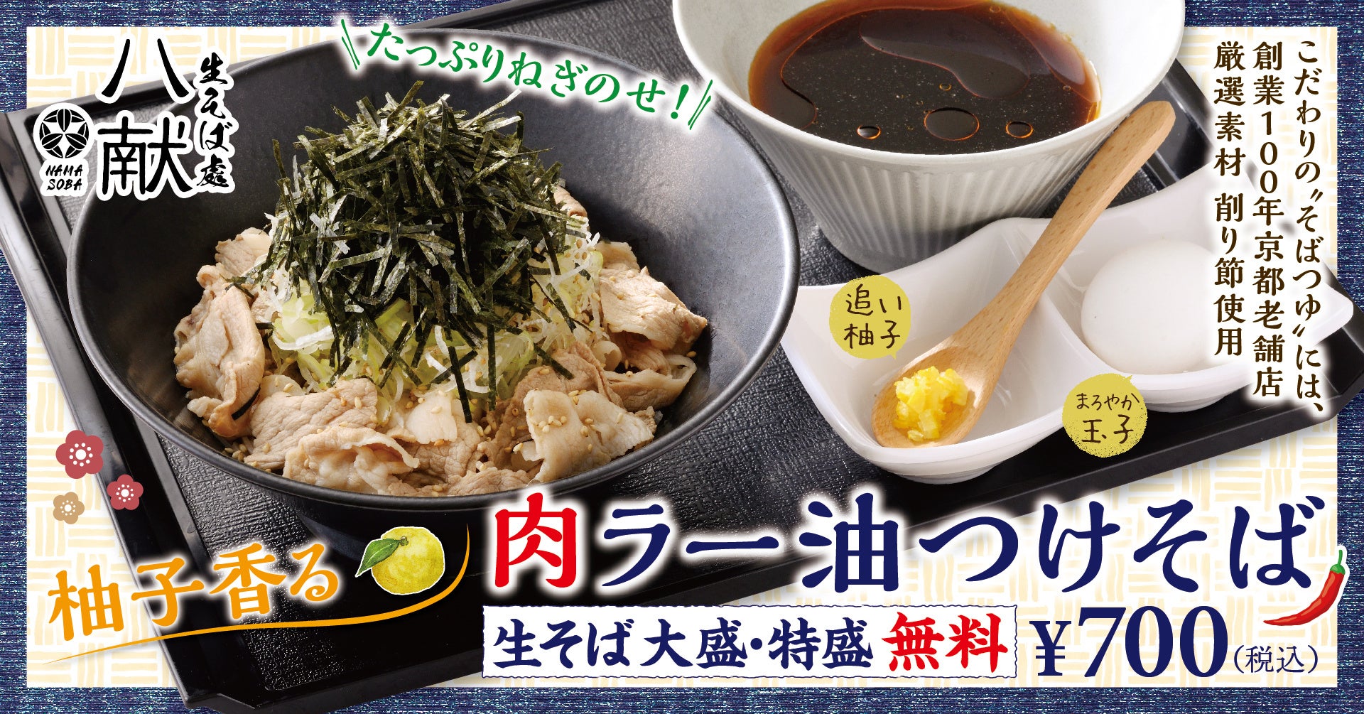 ニラックス株式会社(本社:東京都武蔵野市、代表取締役:崎田 晴義)が運営する “ワイズキャフェテリア 新宿エステックビル” 内『生そば處 八献』にて、新メニュー「肉ラー油つけそば」が登場いたしました。