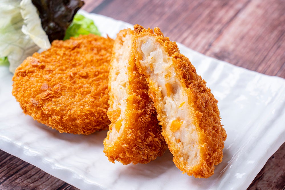 玉ねぎの甘さを堪能できるコロッケ!ホクホクトロトロです。※提供時はカットしておりません。