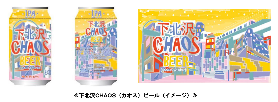 世田谷区(所在地:東京都世田谷区、区長:保坂 展人)、下北沢商店連合会(所在地:東京都世田谷区、会長:柏 雅康)、株式会社オオゼキ(本社:東京都世田谷区、代表取締役会長兼社長:石原坂寿美江、以下:オオゼキ)、株式会社日テレ7(本社:東京都港区、代表取締役社長:大関 雅人、以下:日テレ7)、京王電鉄株式会社(本社:東京都多摩市、取締役社長:紅村 康、以下:京王電鉄)では、「サブカルの街『下北沢』をさらに盛り上げたい!」をコンセプトに5者で連携して生まれた下北沢の象徴となるクラフトビール「下北沢CHAOS(カオス)ビール」を、3月30日(水)から発売します。発売場所はオオゼキ全店、京王ストア・キッチンコート全店、TSUTAYA BOOKSTORE 下北沢です。