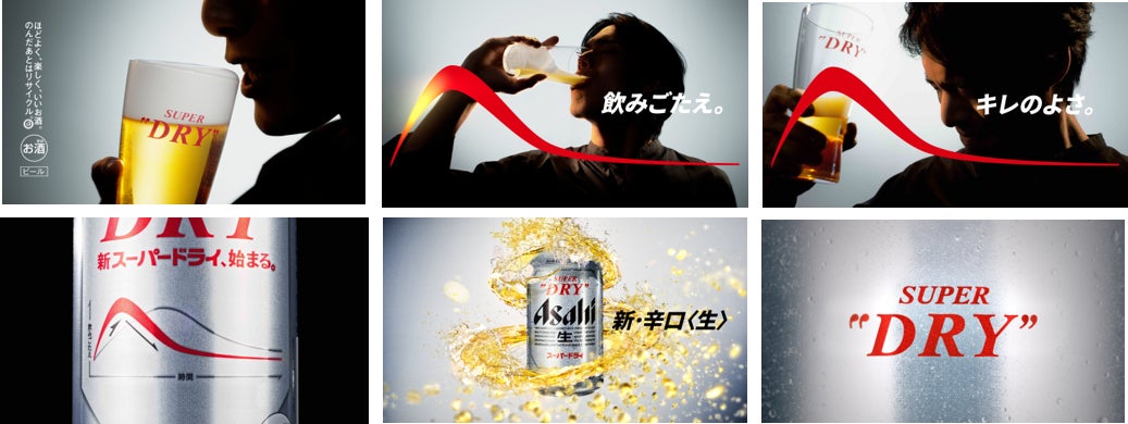 今回のTVCMは、フルリニューアルによって缶体にもデザインされている“辛口カーブ”を訴求する内容となっています。“新スーパードライ”のうまさの特長である、飲んだ瞬間の“飲みごたえ”と瞬時に感じる“キレのよさ”を“辛口カーブ”で表現し、男性が“新スーパードライ”を飲む様子や飲んだ後の表情を通じて“辛口カーブが生み出す躍動的なうまさ”を訴求しています。CMの最後に「スーパードライ」の缶体にビールを想起させるイエローの液色が渦を巻き、それが弾ける様子を描くことで“躍動的なうまさ”を表現し“新・辛口〈生〉”への期待感を醸成しています。前回に続き「ONE OK ROCK」の高揚感溢れる「Wonder」をTVCMの楽曲に使用し「スーパードライ」が持つ躍動感のあるブランドイメージを表現しています。