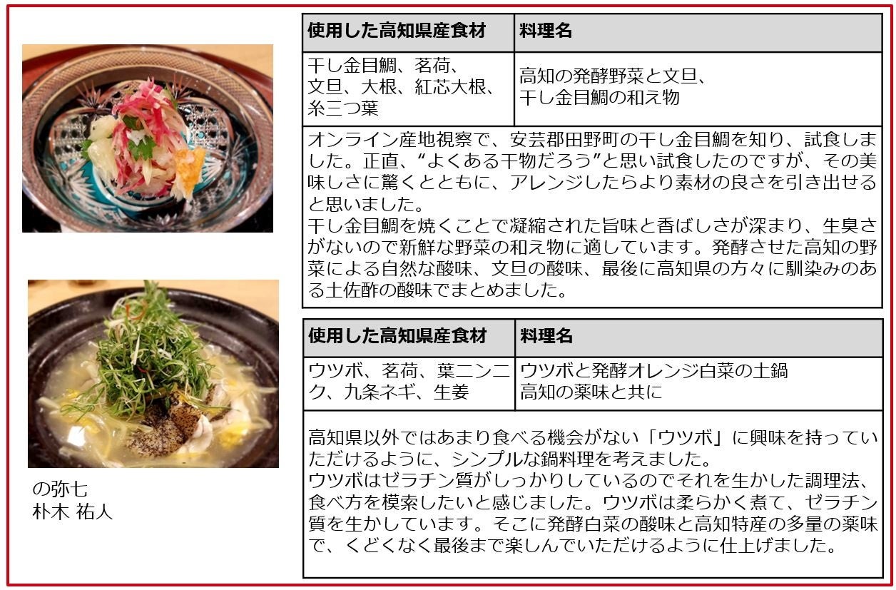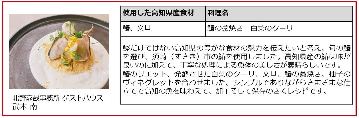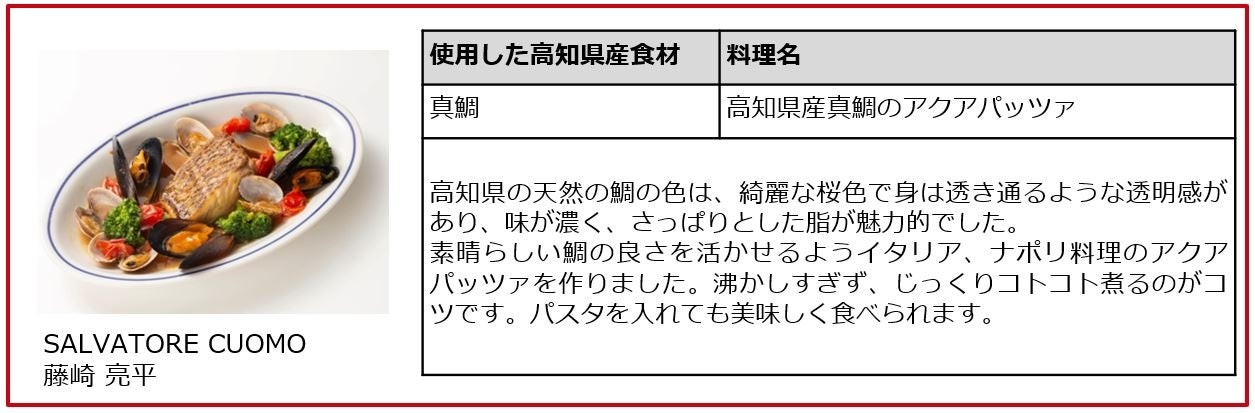 「高知県×CLUB RED」プロジェクト参加シェフ