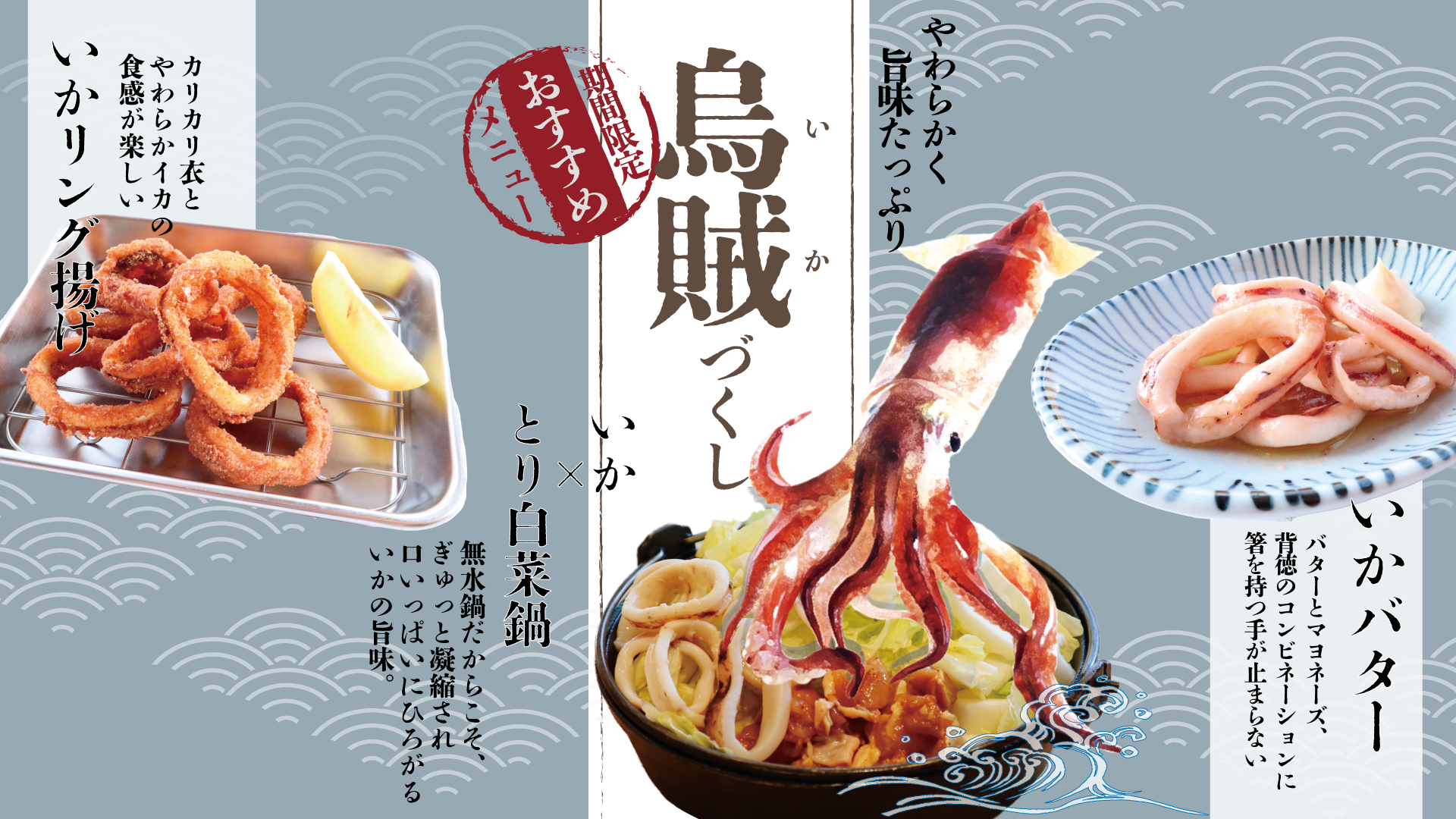 石川県で70年に渡り愛される「さぶろうべい」を展開する株式会社SU-BEE(本社:石川県金沢市、代表取締役社長:田端 弘一)は、昨年大好評だった烏賊(イカ)を使ったメニューを、期間限定メニューとして、2022年3月18日(金)より全店舗で提供をスタート致します。