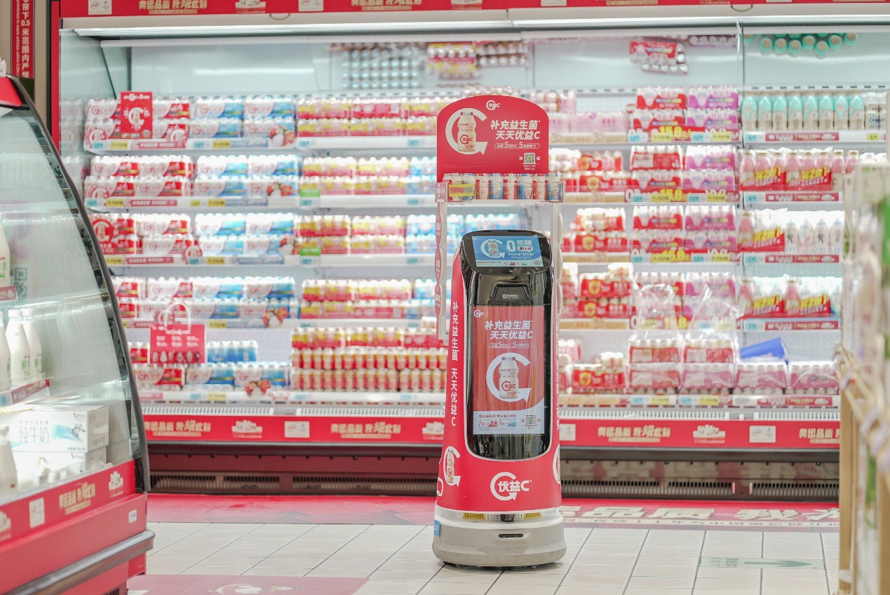先日、グローバルの乳製品TOP10企業である「蒙牛乳業」と商用サービスロボットの大手企業「Pudu Robotics」は戦略的提携を発表しました。今回のビジネス提携は、業界初のスマート案内機能を搭載したサービスロボット「KettyBot」を利用し、中国国内のスーパーマケットで蒙牛乳業のドリンクを乗せたロボットが店内を巡回しながら、商品を販売しています。ロボットはスタッフの「接客係員」のように、革新的且つ独特な解決案で顧客に新たな購買体験を提供しています。