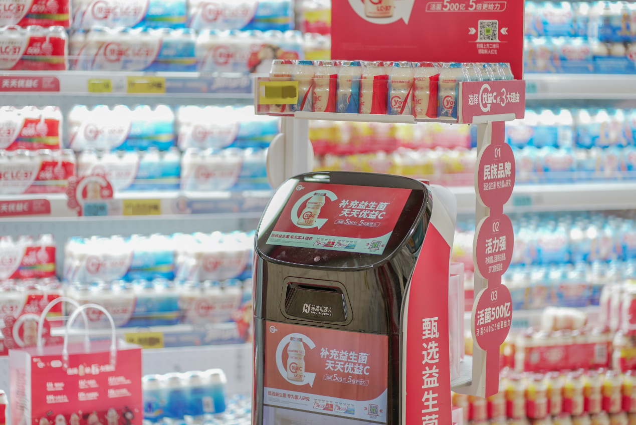 先日、グローバルの乳製品TOP10企業である「蒙牛乳業」と商用サービスロボットの大手企業「Pudu Robotics」は戦略的提携を発表しました。今回のビジネス提携は、業界初のスマート案内機能を搭載したサービスロボット「KettyBot」を利用し、中国国内のスーパーマケットで蒙牛乳業のドリンクを乗せたロボットが店内を巡回しながら、商品を販売しています。ロボットはスタッフの「接客係員」のように、革新的且つ独特な解決案で顧客に新たな購買体験を提供しています。