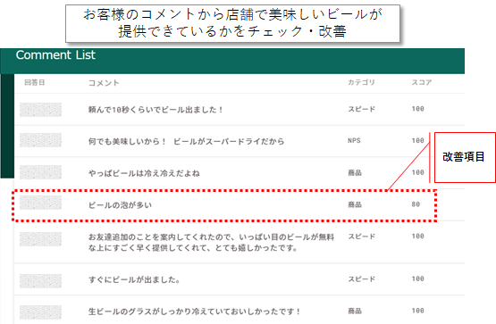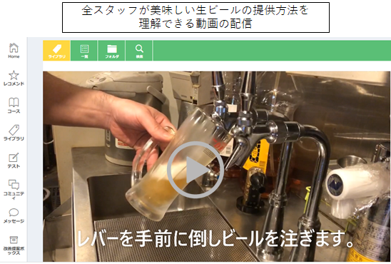やきとり家すみれでは、全スタッフが美味しい生ビールの提供方法を理解できるように、動画で閲覧できるシステムを活用しております。また実際にご利用頂いたお客様の声をWEBアンケートのコメントから抽出し、改善に繋げる活動を行っております。