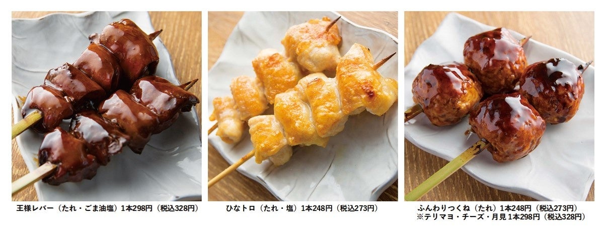 ふんわりつくね(たれ。テリマヨ・チーズ・月見)1本248円(税込273円)~298円(税込328円)