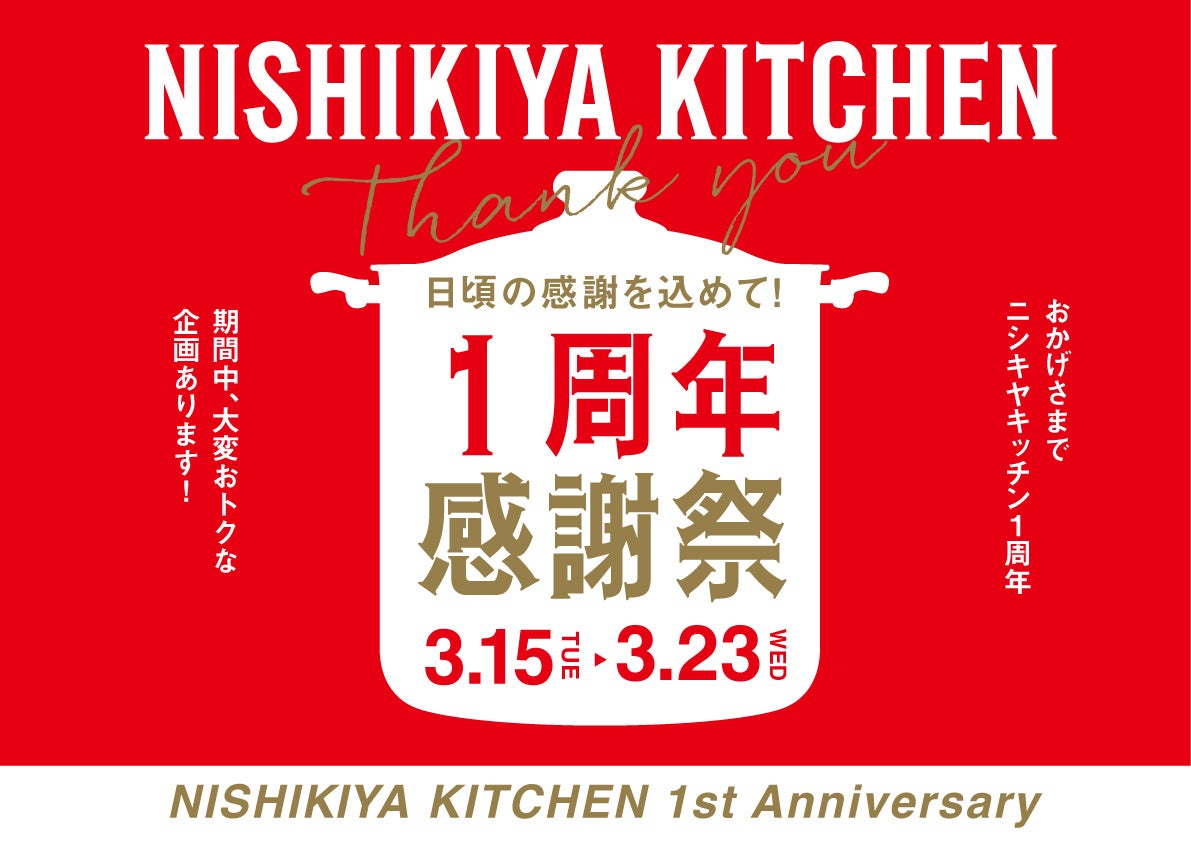リブランドから1年、日頃の感謝を込めて、ニシキヤキッチン直営店・オンラインショップで「1周年感謝祭」を2022年3月15日(火)~2022年3月23日(木)まで期間限定で開催いたします。