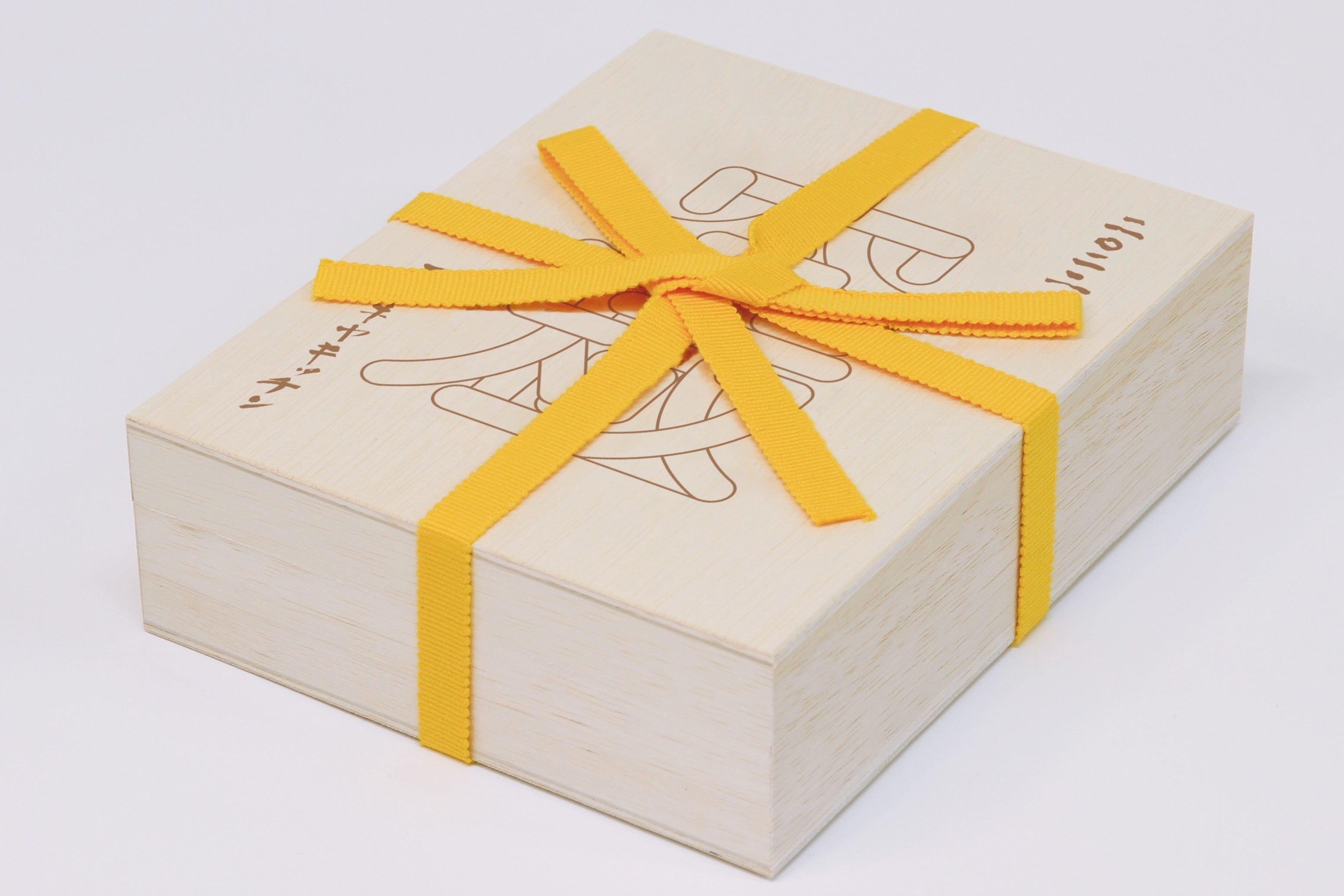 ひとつひとつ丁寧に、手作業で特製の木箱に入れ、こだわりの真田紐をかけてお届けします。