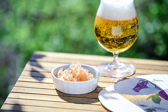沖縄の海水塩を使用しえびの旨味を引き立てました。手が止まらない後引くおいしさに仕上げています。ビールやレモンサワー、日本酒、ノンアルコールのおつまみとしても好相性です。