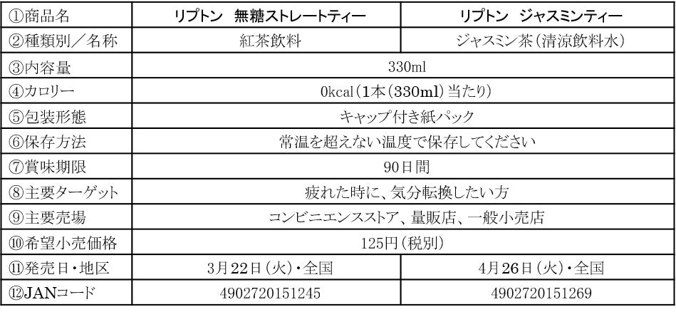 そこでこのたび、リプトン無糖シリーズとして「リプトン 無糖ストレートティー」「リプトン ジャスミンティー」を、持ち運びに便利なキャップ付紙パックにて、新発売いたします。