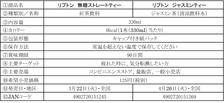 そこでこのたび、リプトン無糖シリーズとして「リプトン 無糖ストレートティー」「リプトン ジャスミンティー」を、持ち運びに便利なキャップ付紙パックにて、新発売いたします。