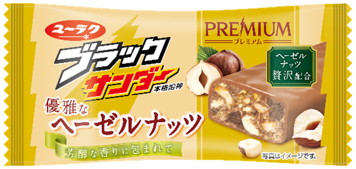 - 大好評の「ブラックサンダープレミアムシリーズ」より、”チョコレート×ヘーゼルナッツ”のプレミアムな味わいがたまらない「ブラックサンダー優雅なヘーゼルナッツ」が新登場!
