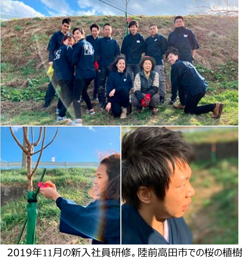 ◆新人社員実地研修:毎年数回、炊き出しのボランティアや桜ライン311の植樹会に参加など