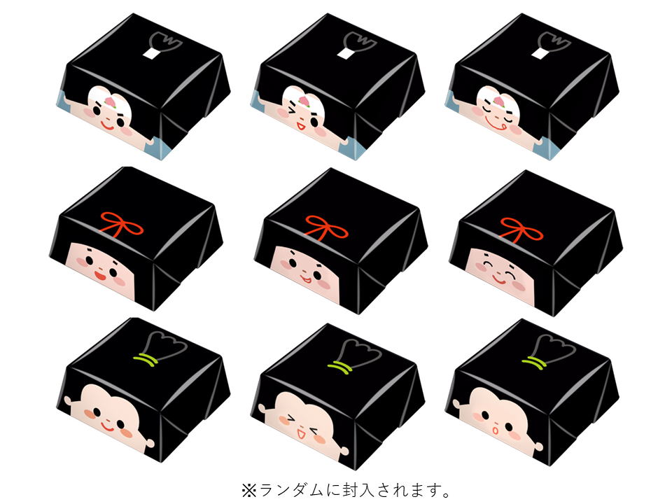 個包装の体と顔部分を重ねると、桃太郎・金太郎・浦島太郎が完成!