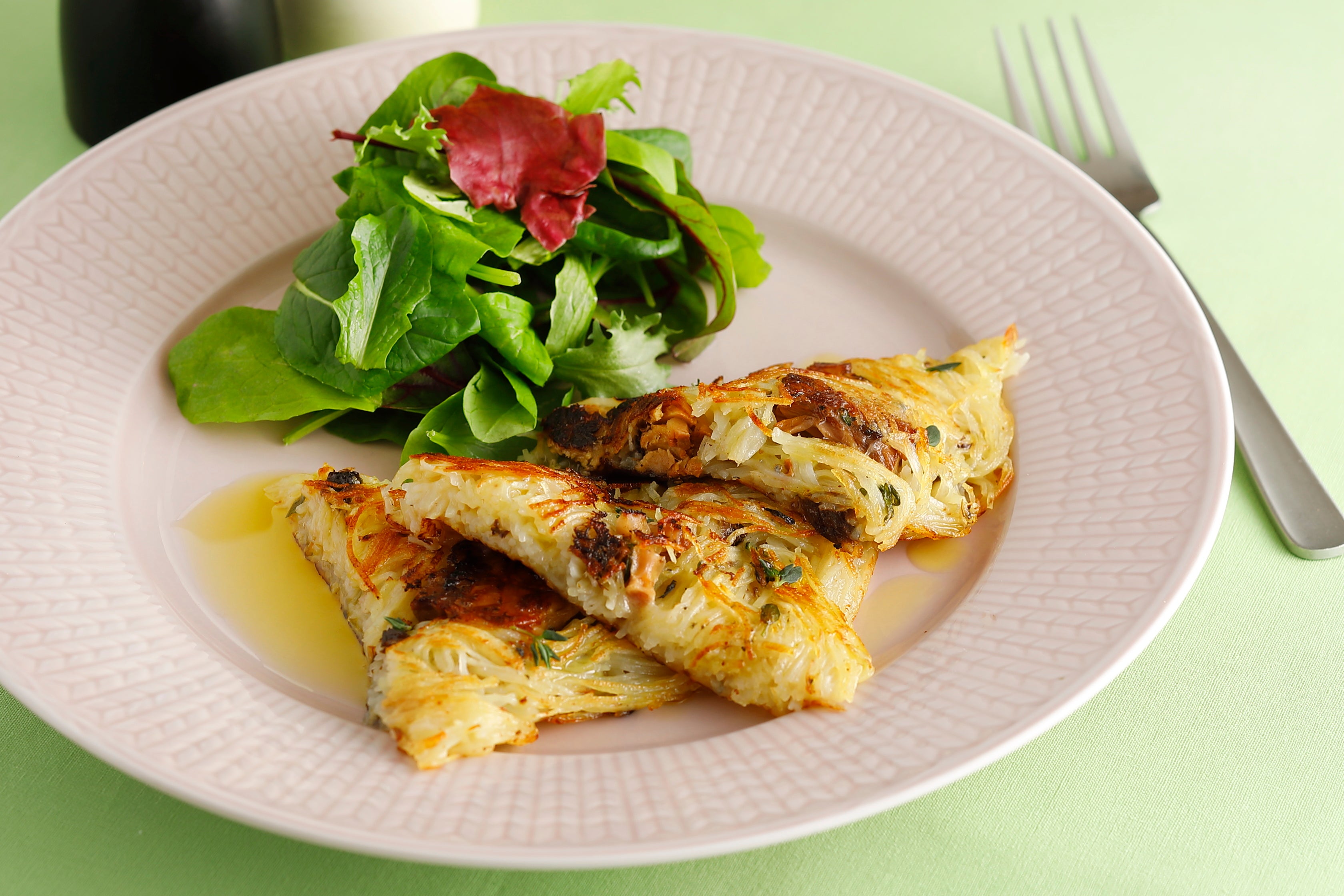 鯖缶を洋風にアレンジ。ジャガイモの千切りはスライサーなどを使うと簡単。鯖缶をほぐしてジャガイモと混ぜて一緒に焼くだけ。朝食やランチなどにおすすめです。