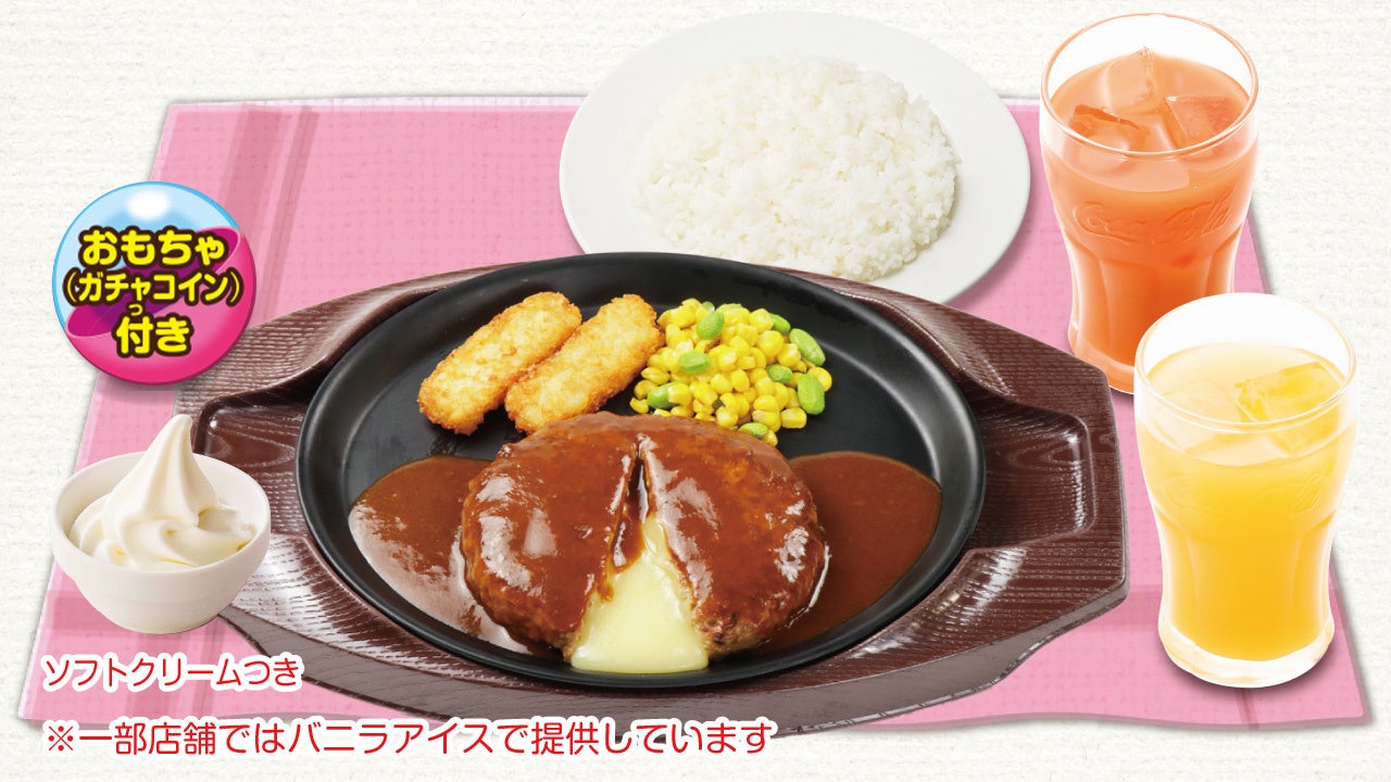 ・ラッキーチーズINハンバーグセット(ライス・ソフトクリーム又はアイス、ドリンクバー付き)