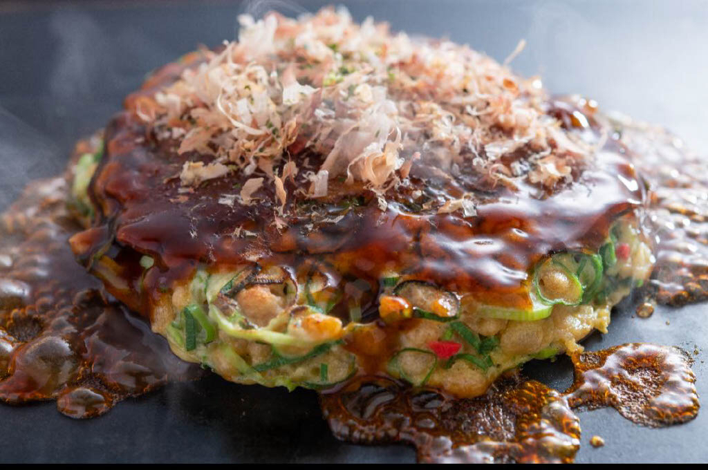 九条ねぎをふんだんに使用したふわふわお好み焼き。柔らかな食感と甘みが口いっぱいに広がります。
