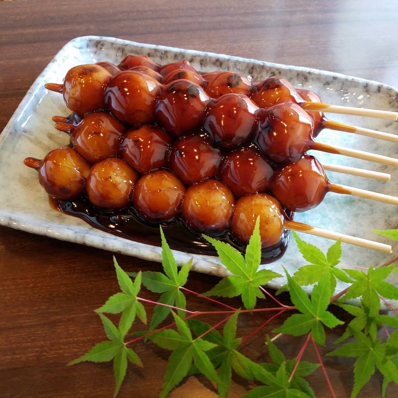京都発祥、京名物であるみたらし団子を丁寧に焼き秘伝の甘辛いタレを絡めた、みたらし団子の人気店。
