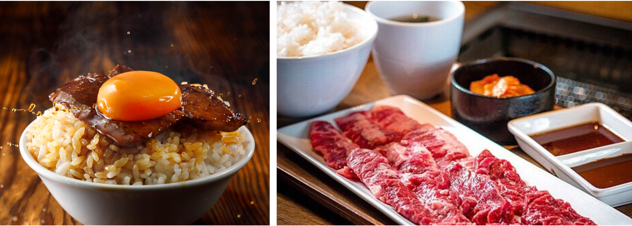 お米は岩手県産の「ひとめぼれ」という国産米を使用。肉に合わせて少し固めに炊いております。ご飯は専用のマシーンでよそうことにより人の手よりふっくらしたご飯が提供できます。