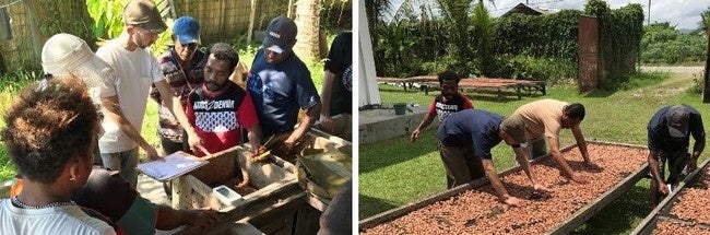 またカカオ豆の品質を左右する、原産国で行われる「発酵・乾燥」の工程を研究し、そのレクチャーを農家さんに行っています。