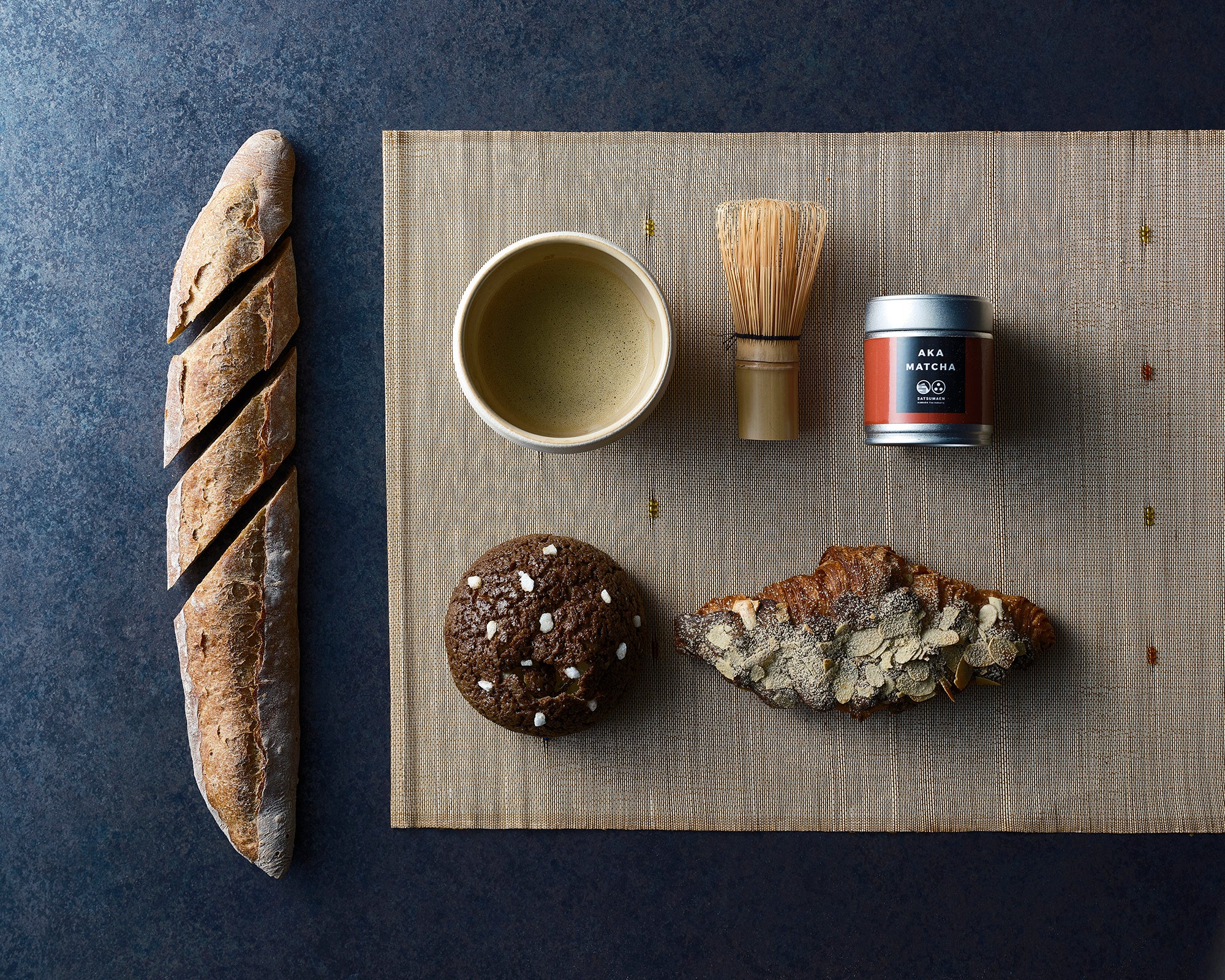 低温長時間発酵の生地に「紅抹茶」を練り込んで焼き上げたバゲットです。