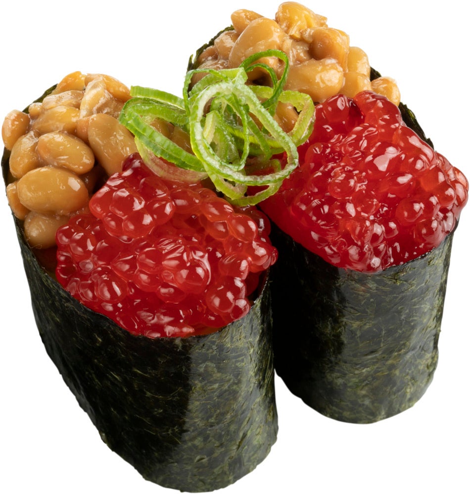 青森でよく食べられる組み合わせの「筋子と納豆」を軍艦に仕立てました。筋子の旨みと塩味が、すしに合うように小粒の大豆を使用しているスシローこだわりの納豆と意外なほど良くあい、新たなマリアージュが爆誕!こんな食べ方あったのか!と膝を打つ、くせになる味わいをお試しあれ!