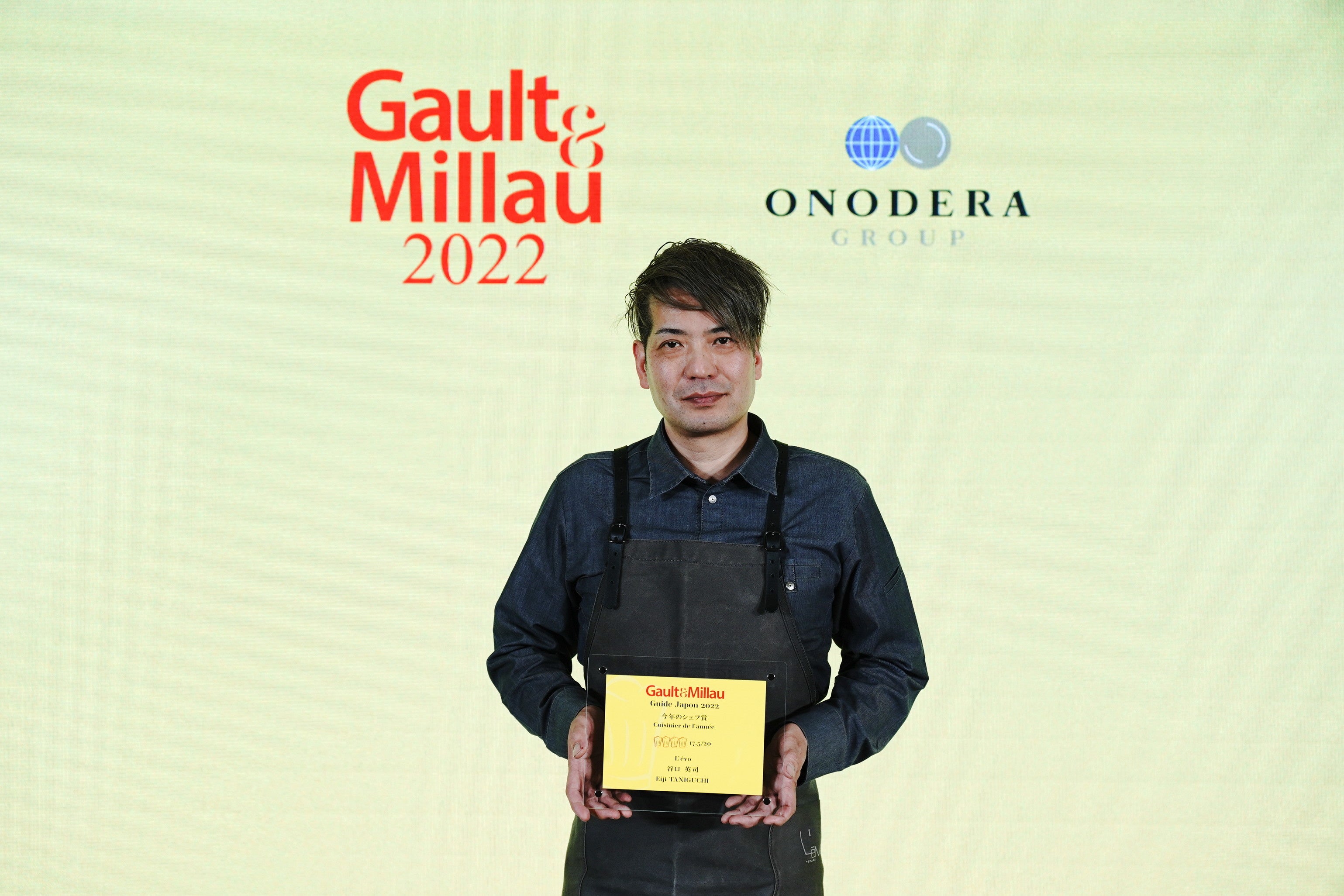 ガストロノミー・パートナーズ株式会社(代表取締役:小野寺 裕司)は、『ゴ・エ・ミヨ 2022』の発刊を記念して『ゴ・エ・ミヨ 2022』発刊記念イベントを3月15日(火)、YouTube Liveにて配信いたしました。調査した店舗の中で、才能を縦横に発揮し、最も斬新で完成度が高く、インパクトのある料理を出した料理人へ贈られる「今年のシェフ賞」 は、富山県L’évo (レヴォ)の谷口 英司氏に贈られました。