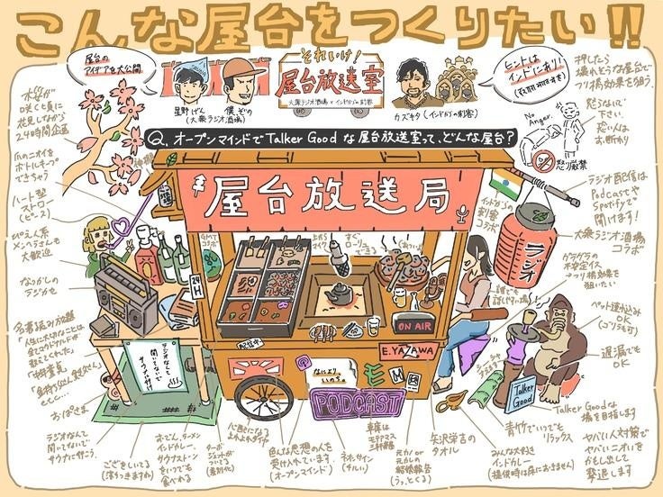 ふさぎ込みがちな現代社会をもっとオープンにしていくために、『人はラジオで話すことでオープンになる』という仮説を元に、どこでもラジオ収録ができる移動式の『ラジオ屋台』を制作し、各地に出向きラジオ番組を収録することで、持続可能で豊かな社会を実現します。みなさまの愛と勇気を、僕たちにください。